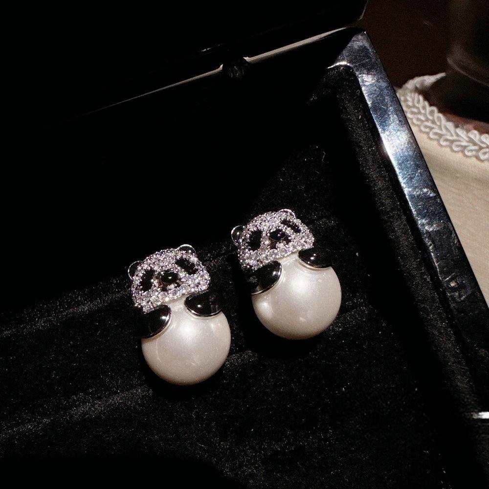 Panda Zircon and Bead Earringsfeature adorable panda designs with zircons and beads,blending cuteness and elegance perfectly.