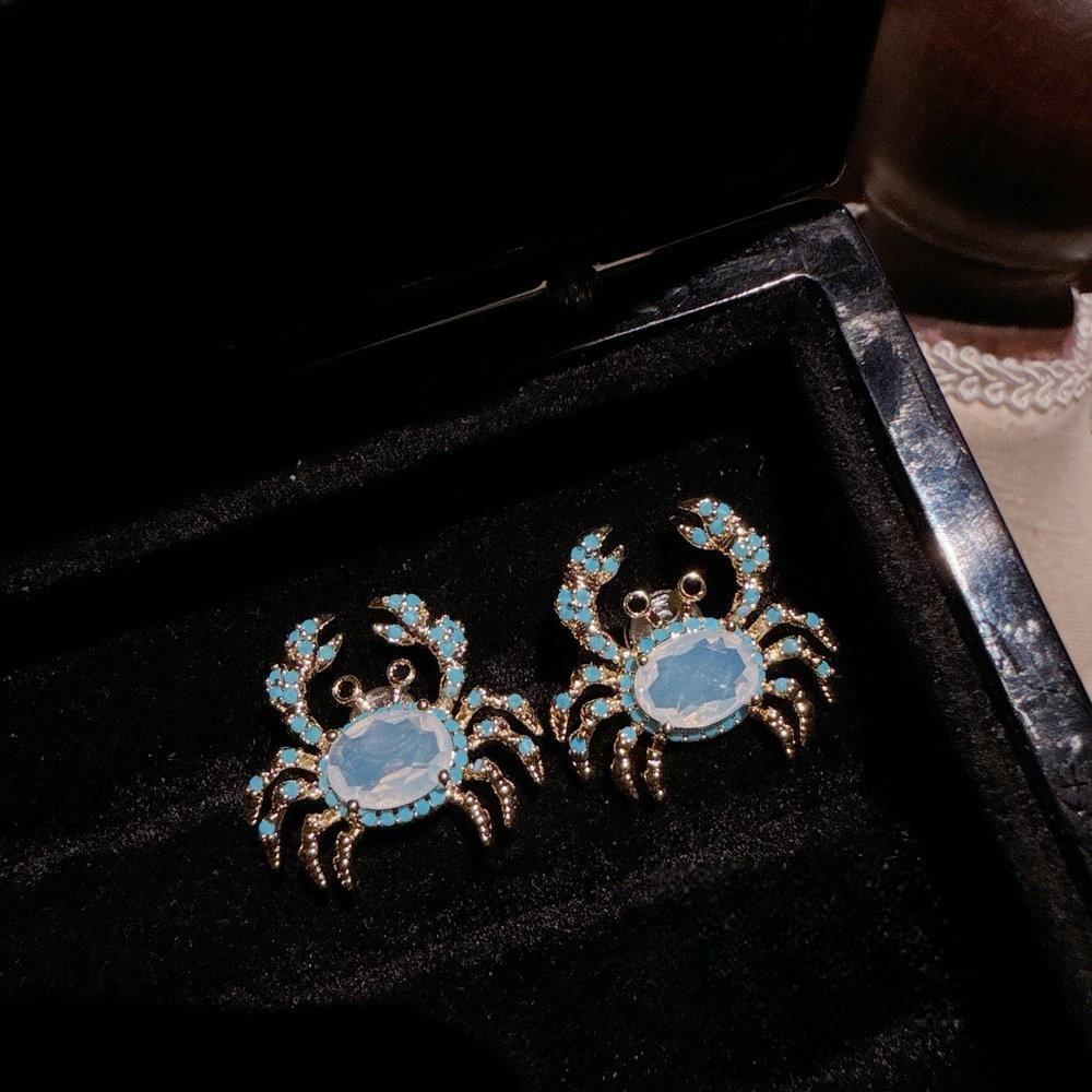 Swiss Blue Crab Zircon Earringscombine stunning Swiss blue zircons with a charming crab design,creating a unique and eye-catching look.