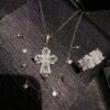 Elevate your style with our unique jewelry pieces,featuring thePleated Skirt Zircon Ringin size 8,perfect for adding a touch of elegance.TheBrushed Vertical Zircon Open RingandBrushed Cross Zircon Chainoffer modern,textured designs with a touch of sparkle.Complement your look with theZircon Teardrop NecklaceandSparkling Cube Zircon Earringsfor a dazzling effect.Complete your ensemble with thePlatinum-Plated Daisy Bracelet,adding a touch of sophistication.Each piece is crafted with attention to detail,making them perfect for any occasion.