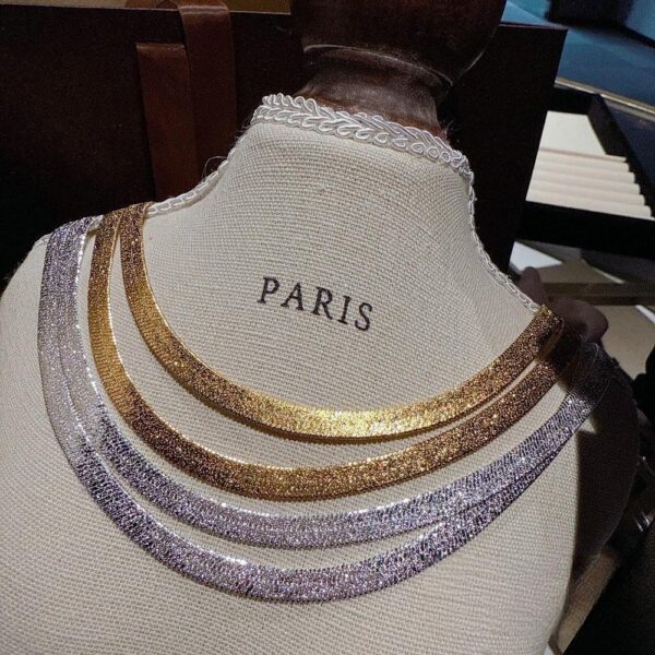 Discover theItalian Laser Beam Fishbone Necklace–a dazzling piece that combines timeless elegance with modern flair.Gold-plated and silver-plated,this necklace features a unique fishbone design that catches the light with every movement,creating a mesmerizing effect.Perfect for adding a touch of sophistication to any outfit,whether you’re dressing up for a special occasion or simply enhancing your everyday look.Imagine yourself at a glamorous evening event or a casual brunch,effortlessly turning heads with this stunning accessory.Treat yourself or gift it to someone special for a truly unforgettable experience.